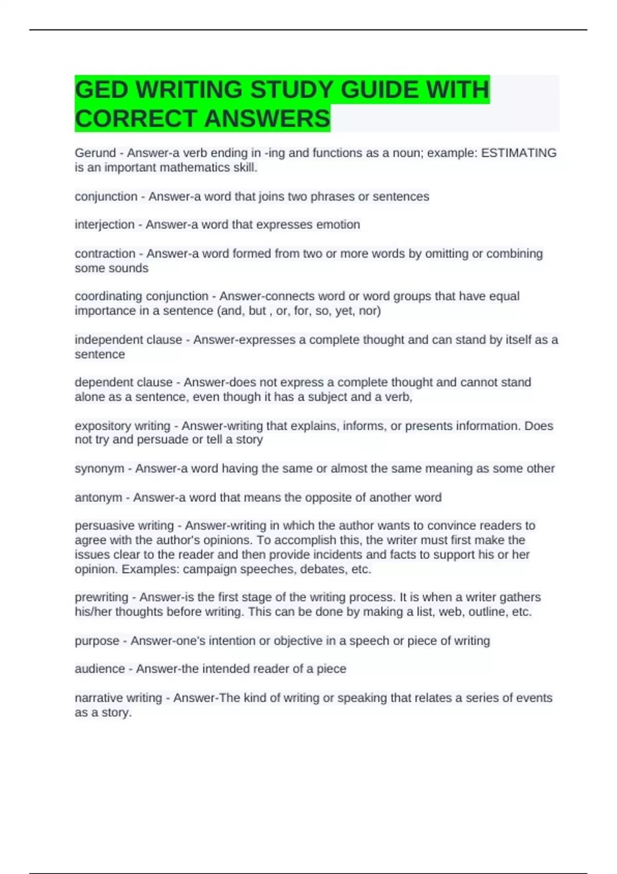 GED WRITING STUDY GUIDE WITH
