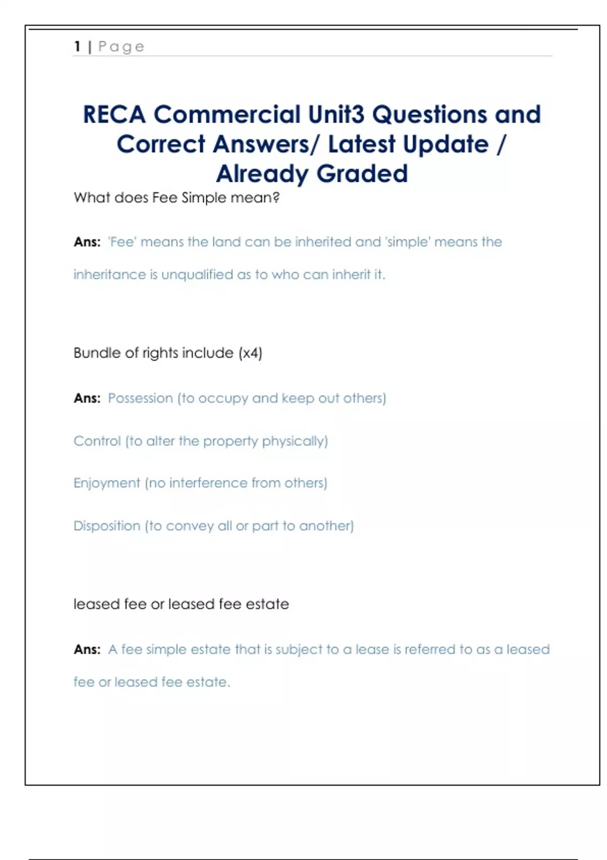 Ans: A fee simple estate that is subject to a lease is referred to as a leased
