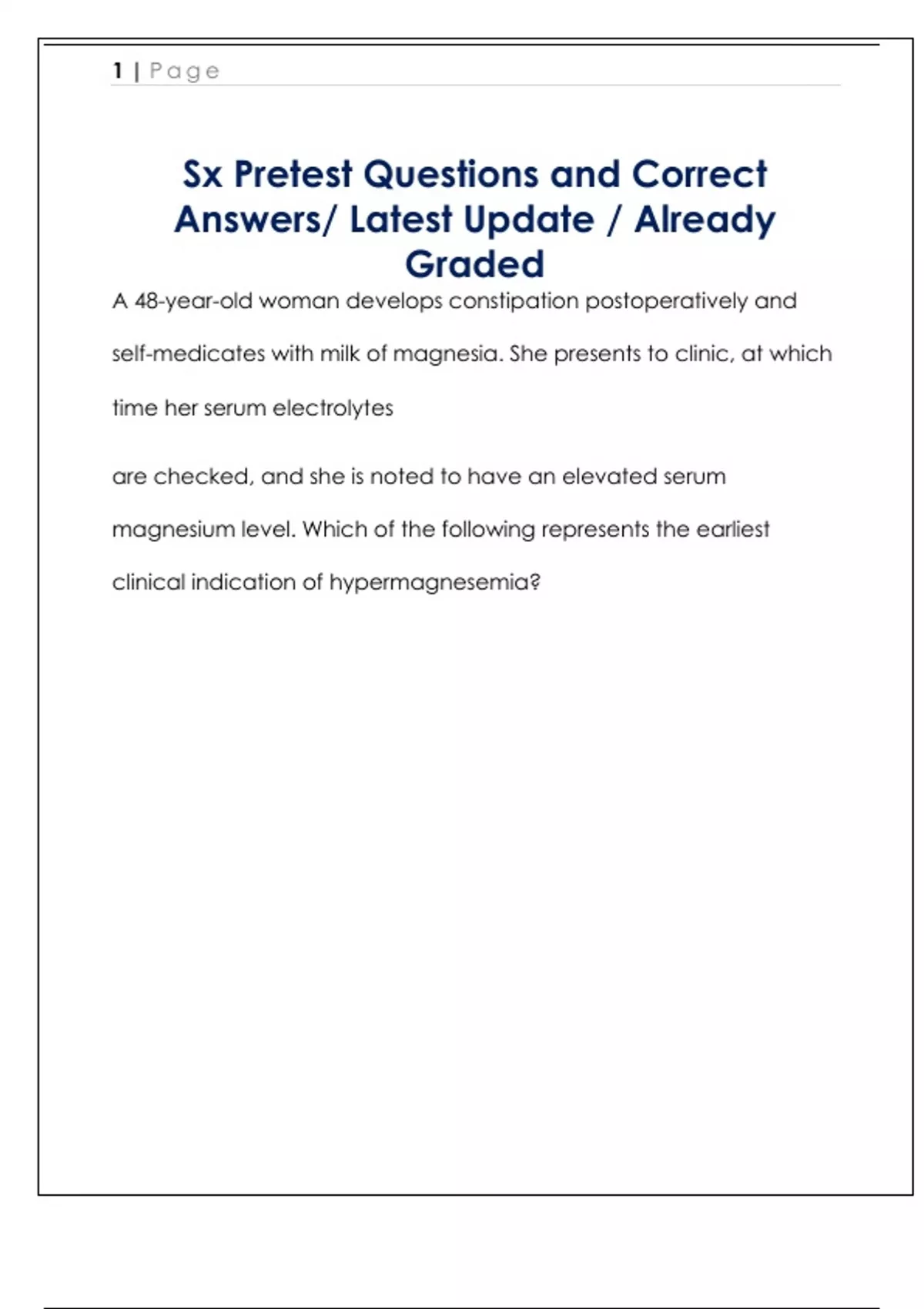 Sx Pretest Questions and Correct Answers/ Latest Update / Already Graded