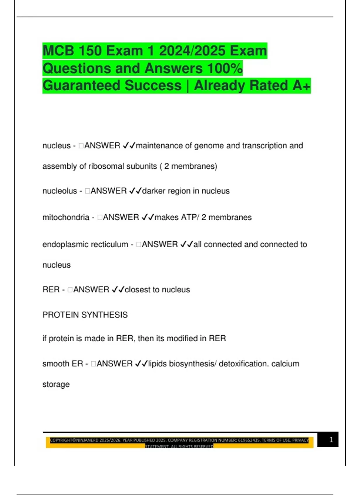 MCB 150 Exam 1 2024/2025 Exam
