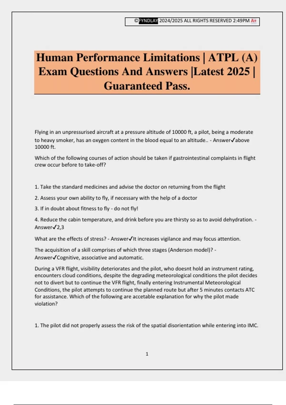 Human Performance Limitations | ATPL (A)