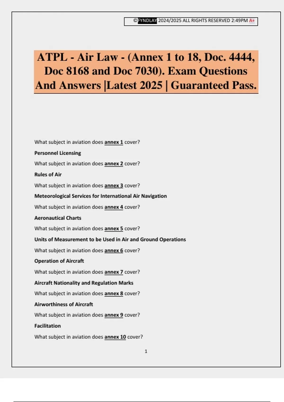 ATPL - Air Law - (Annex 1 to 18, Doc. 4444,