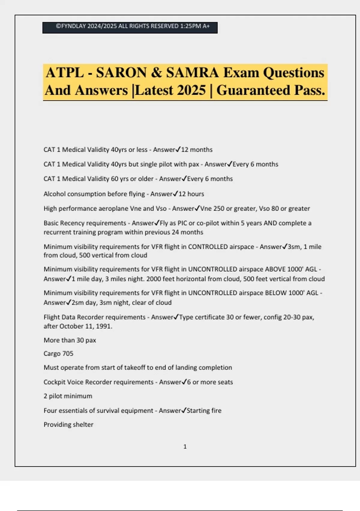 ATPL - SARON & SAMRA Exam Questions