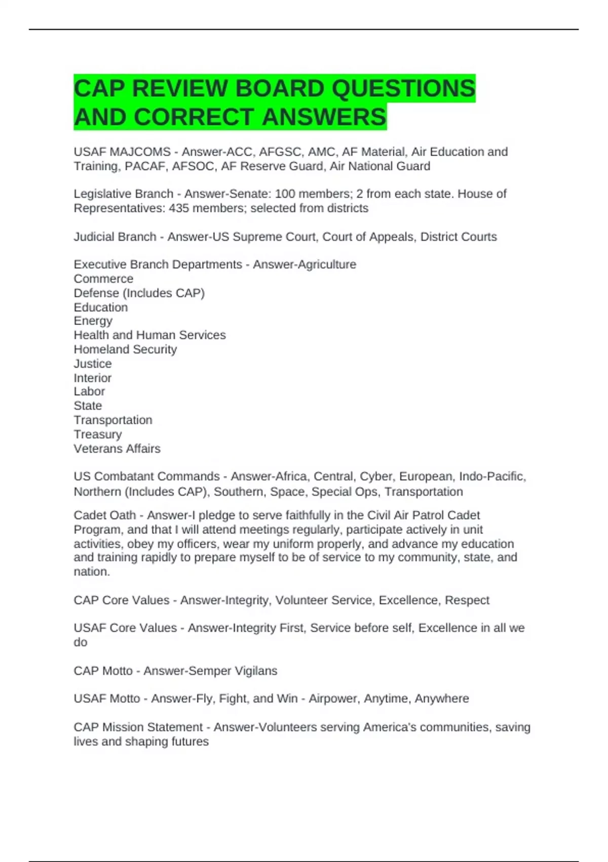 CAP REVIEW BOARD QUESTIONS