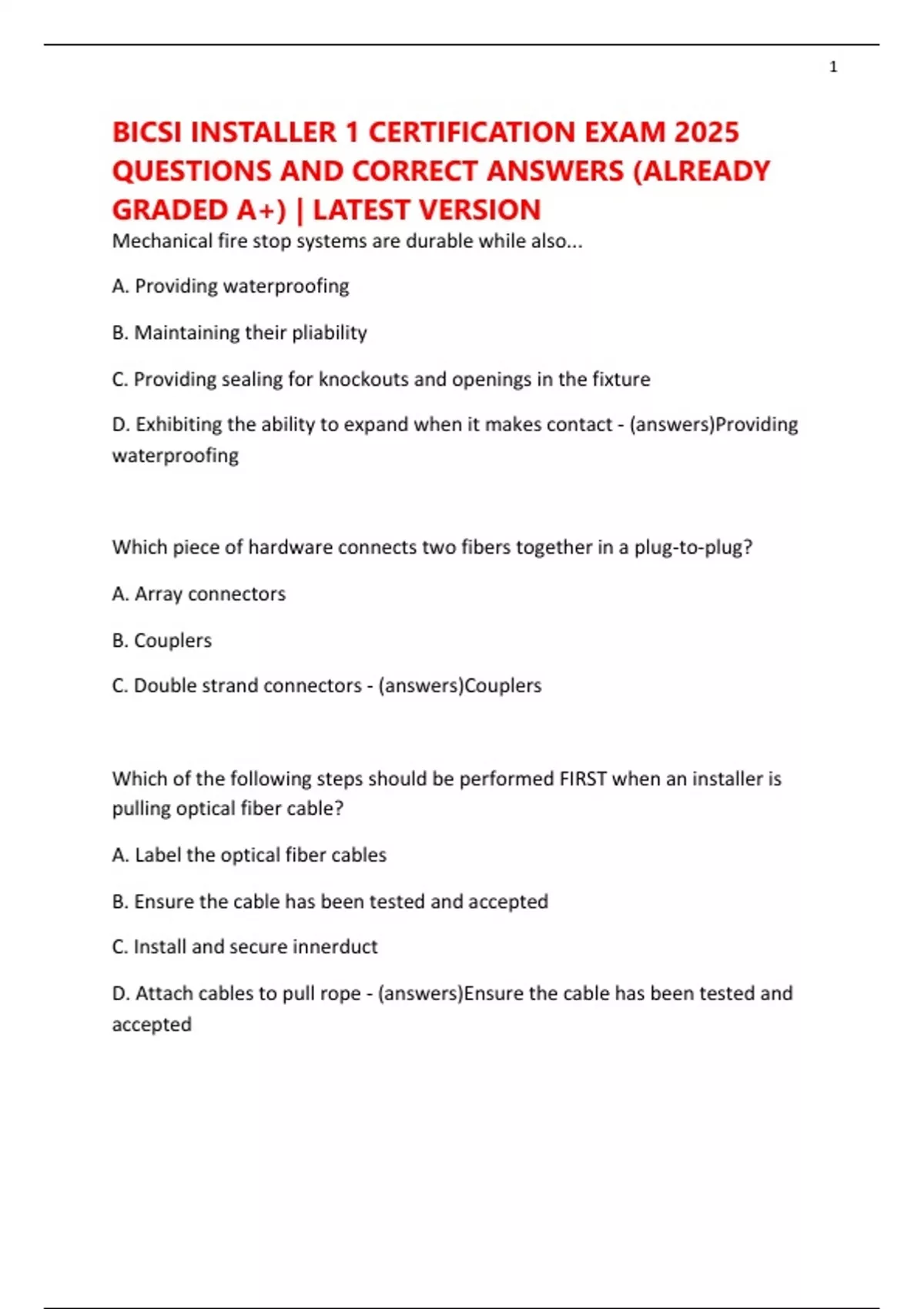 BICSI INSTALLER 1 CERTIFICATION EXAM 2025