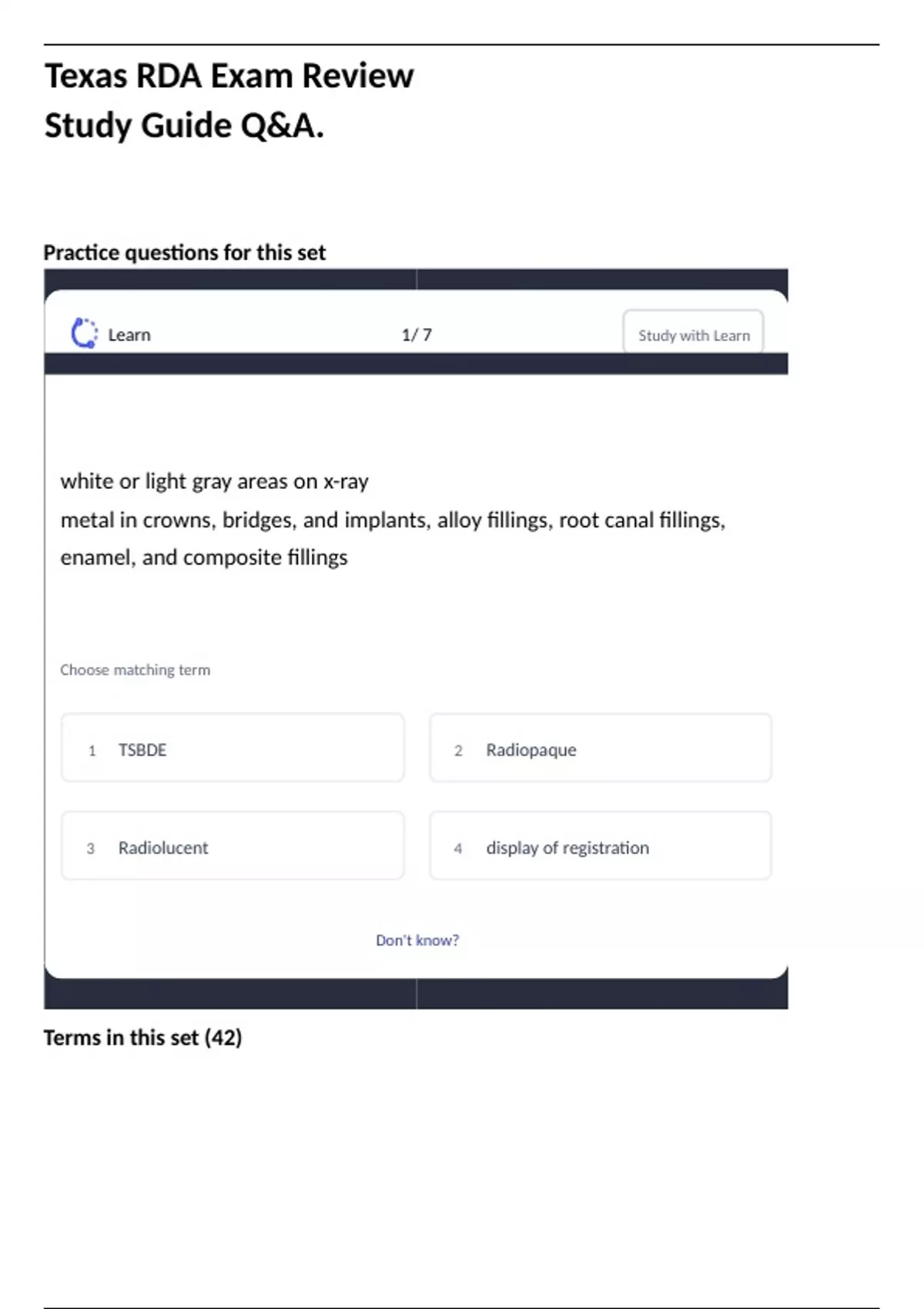 Texas RDA Exam Review Study Guide Q&A.