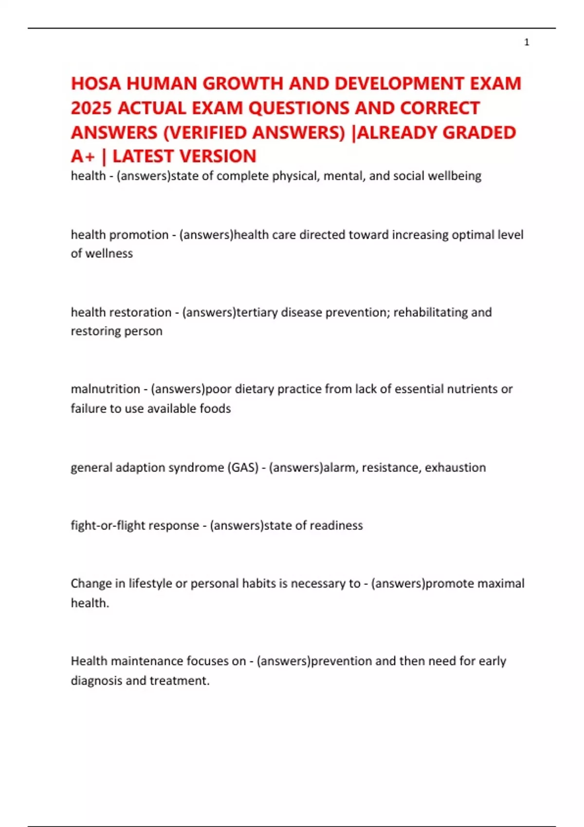 health - (answers)state of complete physical, mental, and social wellbeing