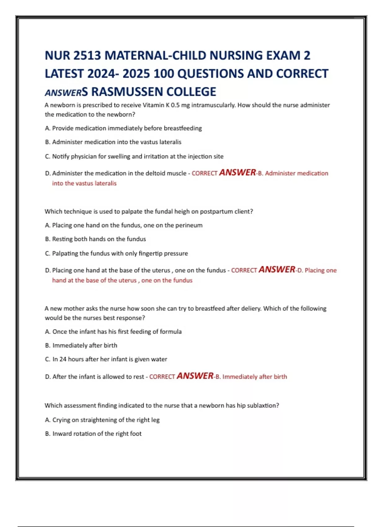 LATEST 2024- 2025 100 QUESTIONS AND CORRECT