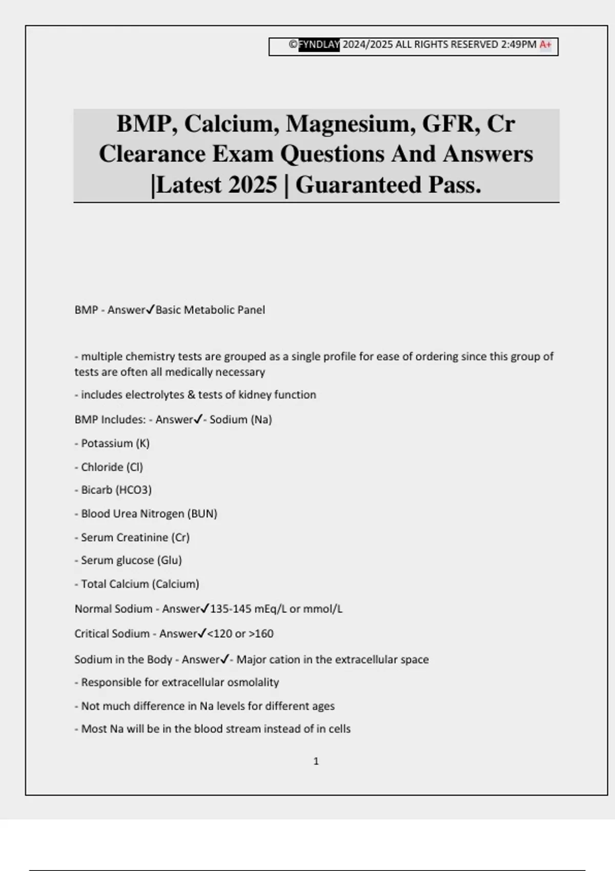 Sodium in the Body - Answer✔- Major cation in the extracellular space