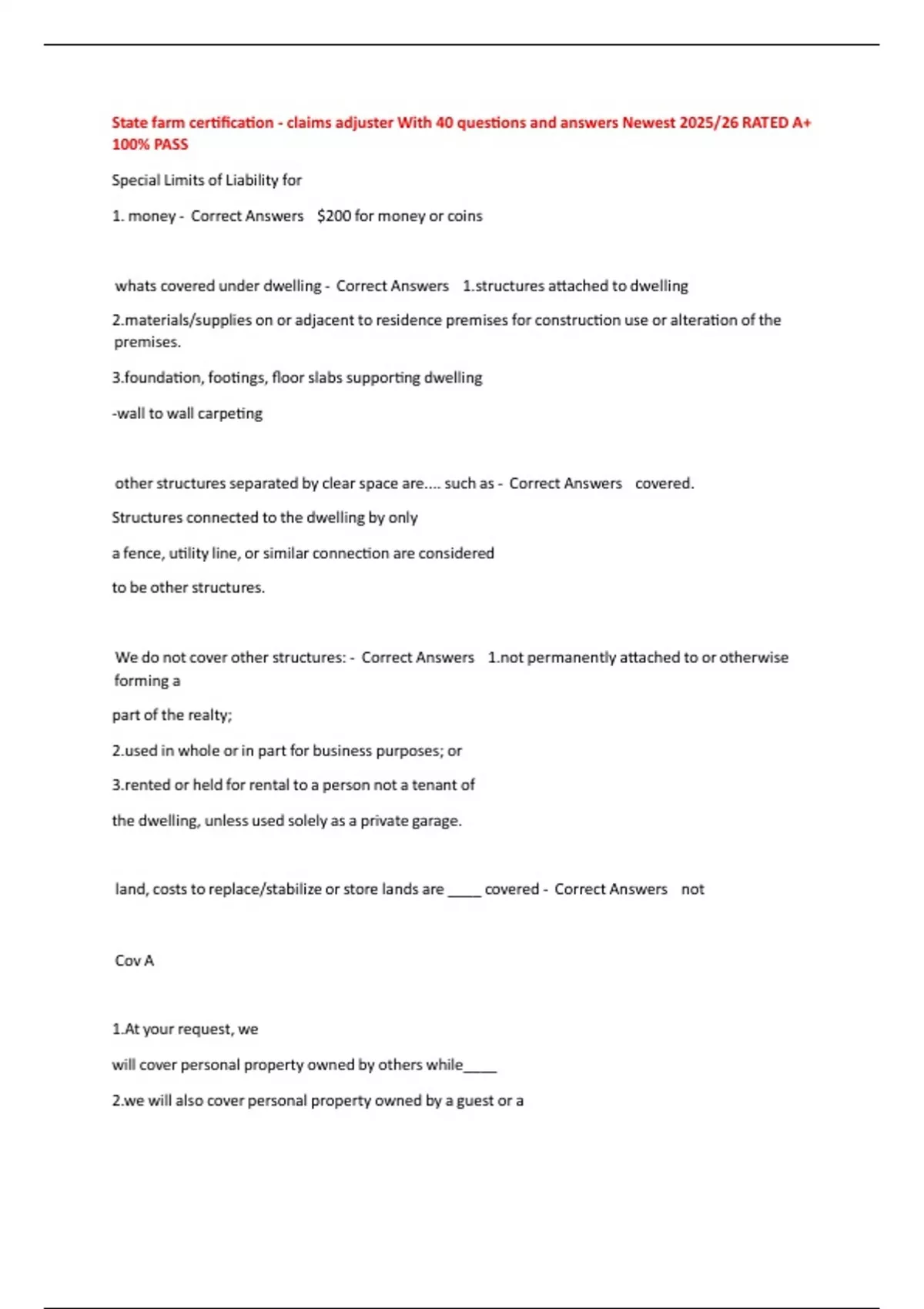 II! whats covered under dwelling - Correct Answers 1.structures attached to dwelling