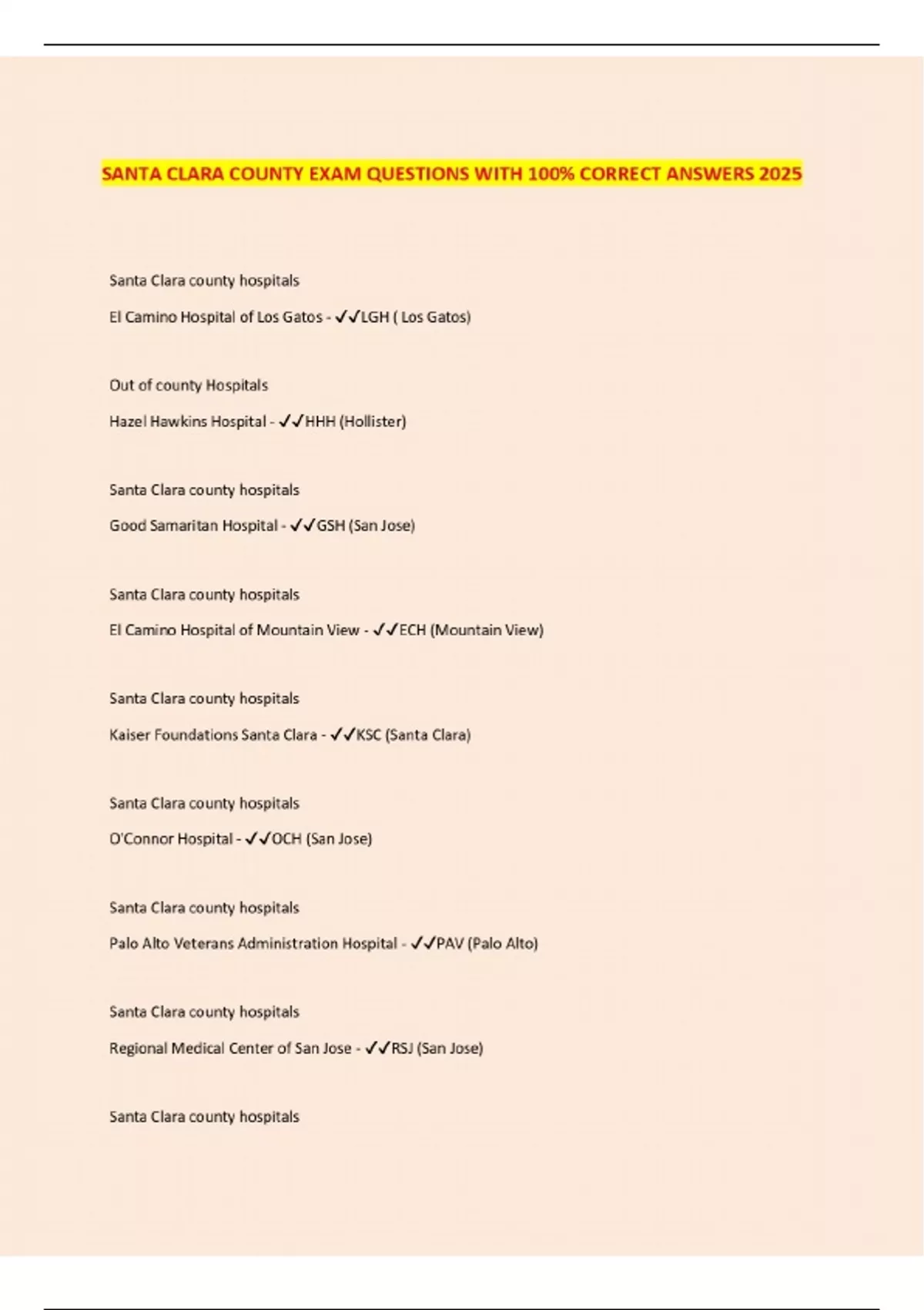 SANTA CLARA COUNTY EXAM QUESTIONS WITH 100% CORRECT ANSWERS 2025