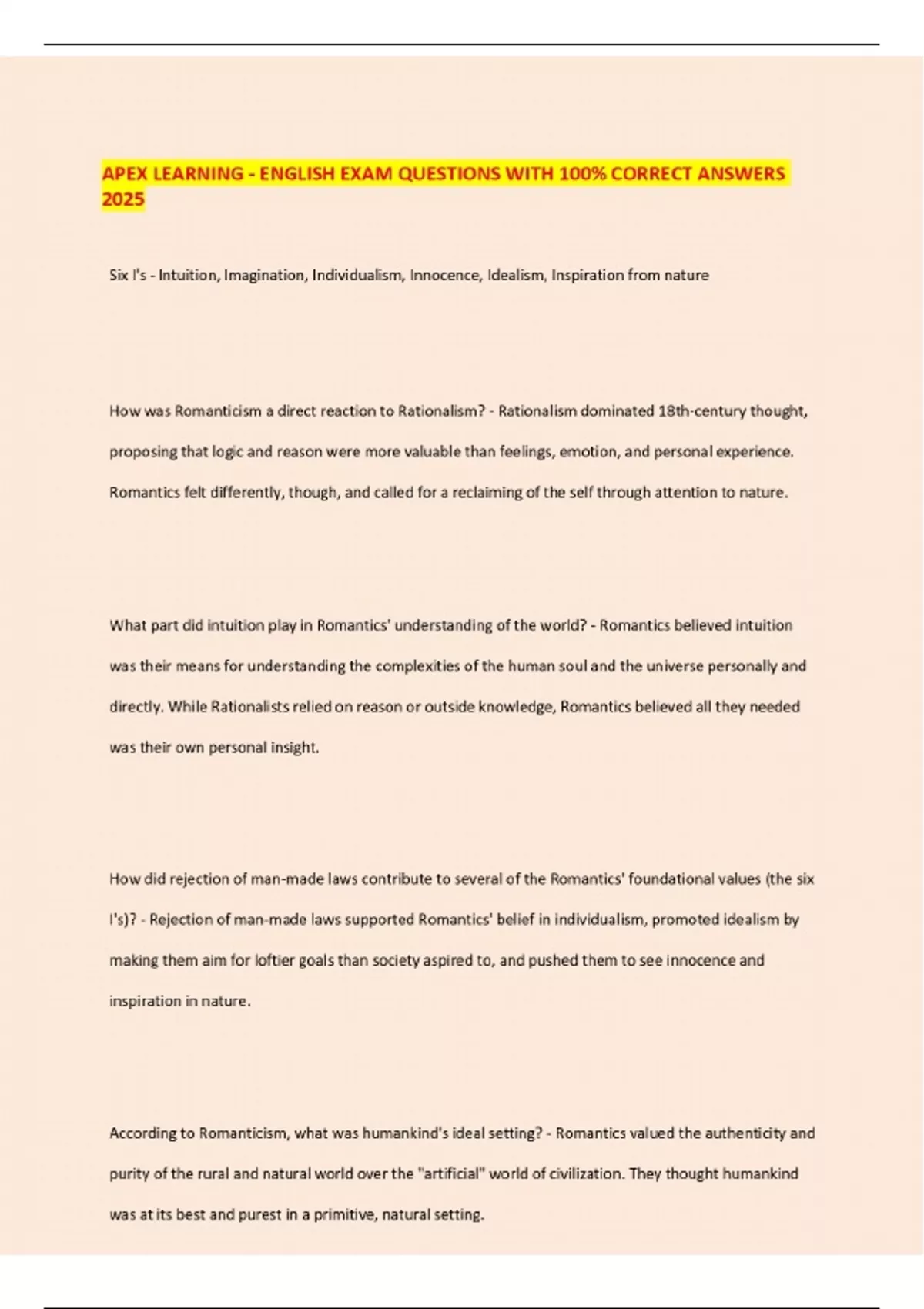 APEX LEARNING - ENGLISH EXAM QUESTIONS WITH 100% CORRECT ANSWERS 2025