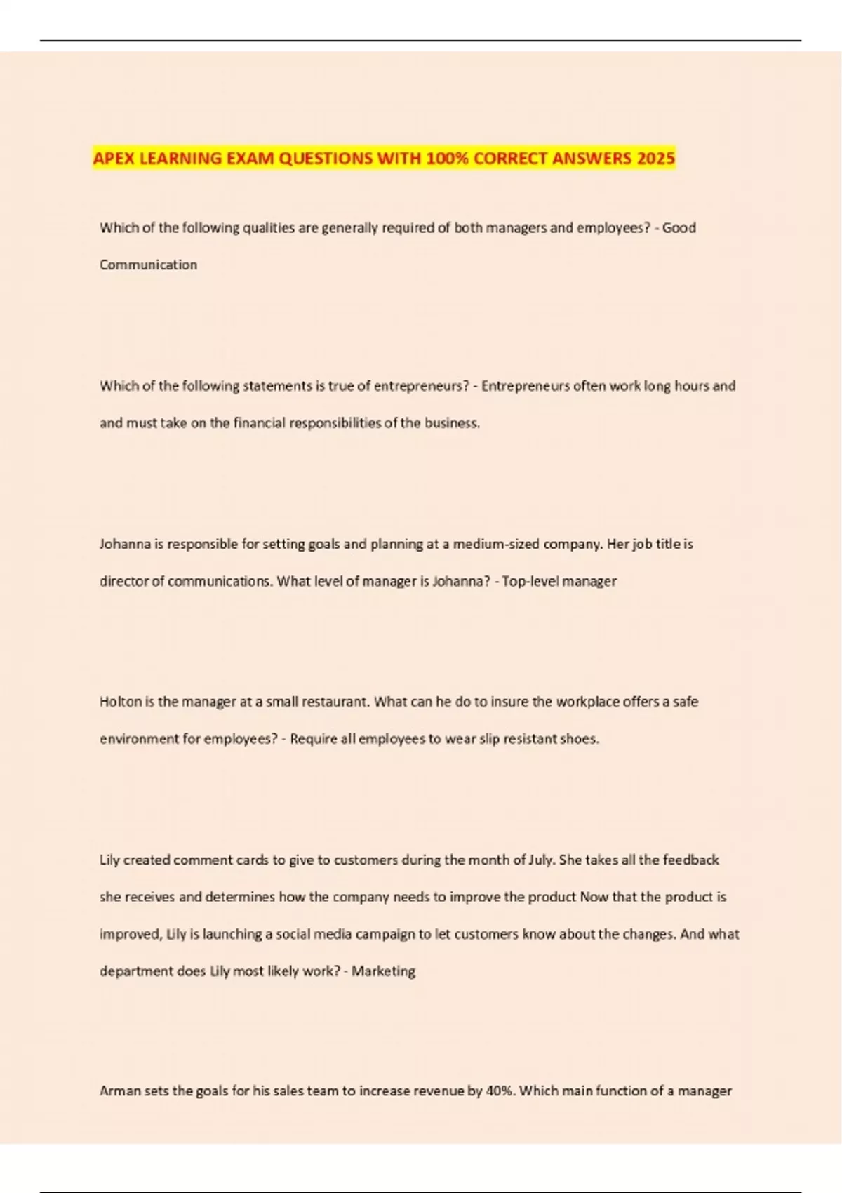 apex learning exam questions with 100 correct ans