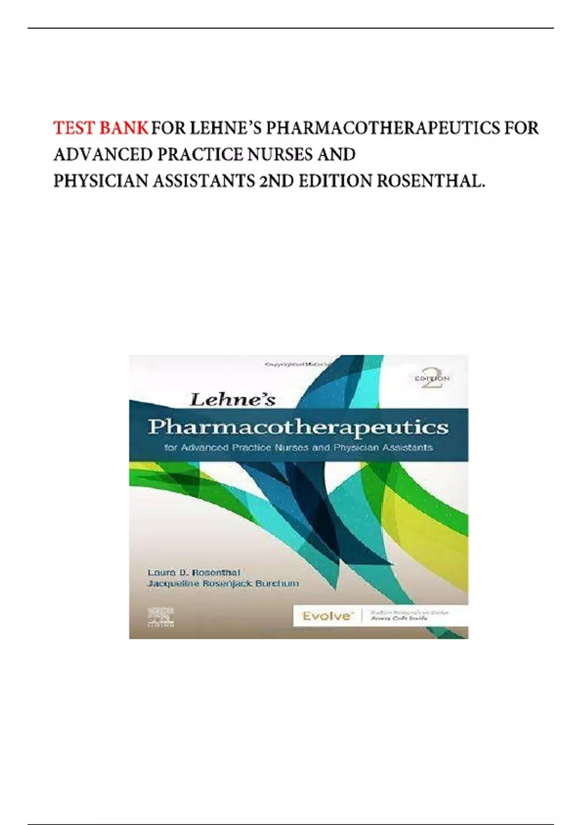 TEST BANK FOR LEHNE'S PHARMACOTHERAPEUTICS FOR ADVANCED PRACTICE NURSES AND PHYSICIAN ASSISTANTS, 2ND EDITION BY LAURA ROSENTHAL.