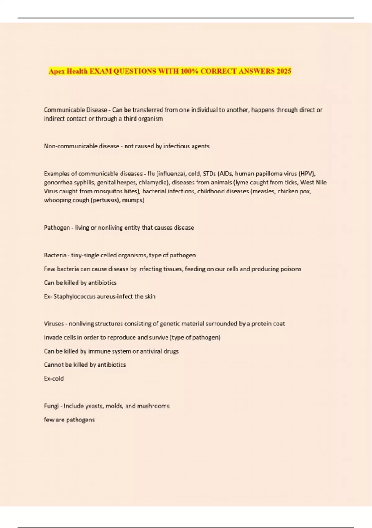 APEX Health EXAM QUESTIONS WITH 100% CORRECT ANSWERS 2025