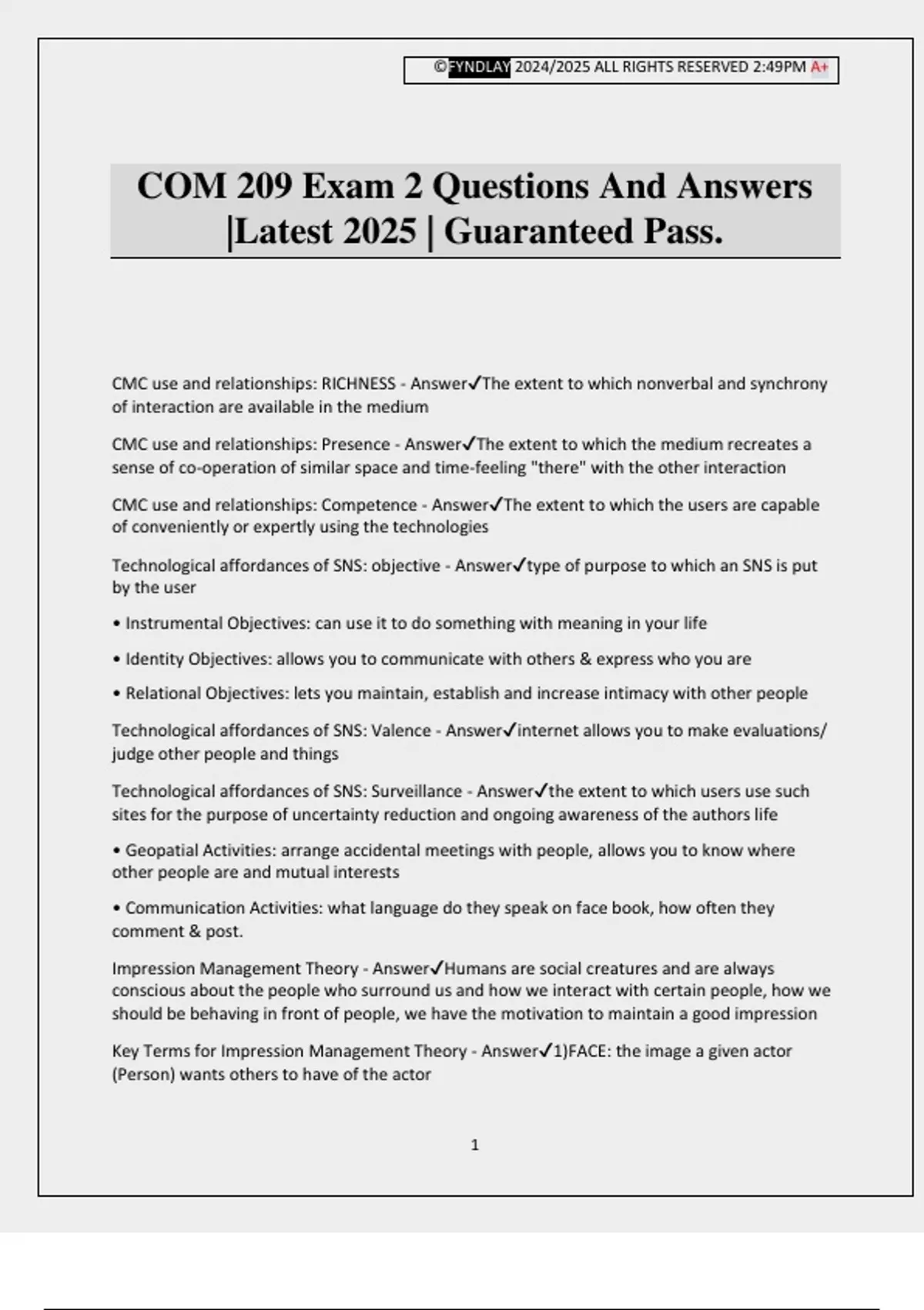 COM 209 Exam 2 Questions And Answers