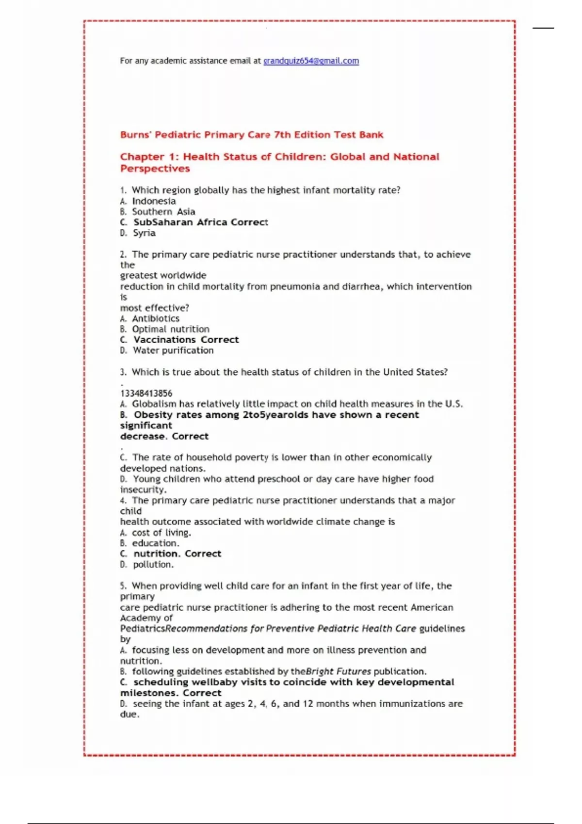 Burns Pediatric Primary Care 7th Edition Test Bank Questions and Answers 1-46 complete chapters Latest 2022/2023