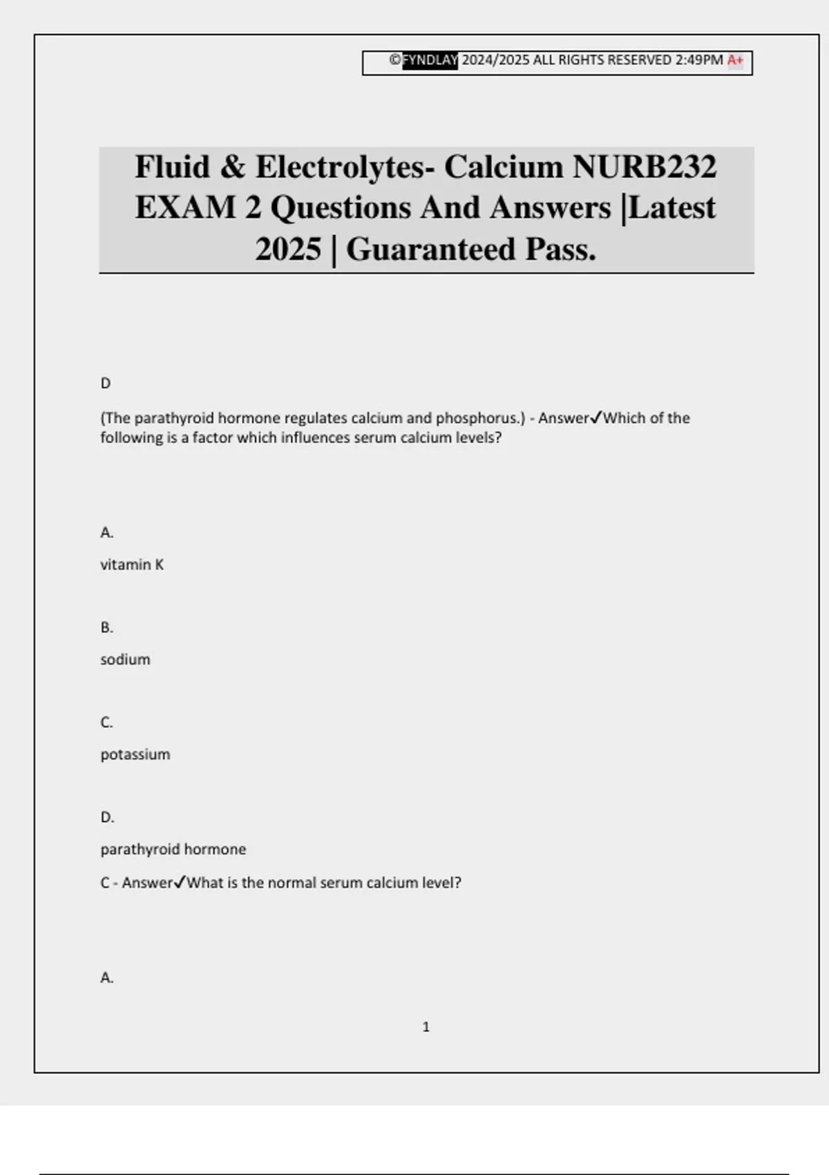 (The parathyroid hormone regulates calcium and phosphorus.) - Answer✔Which of the