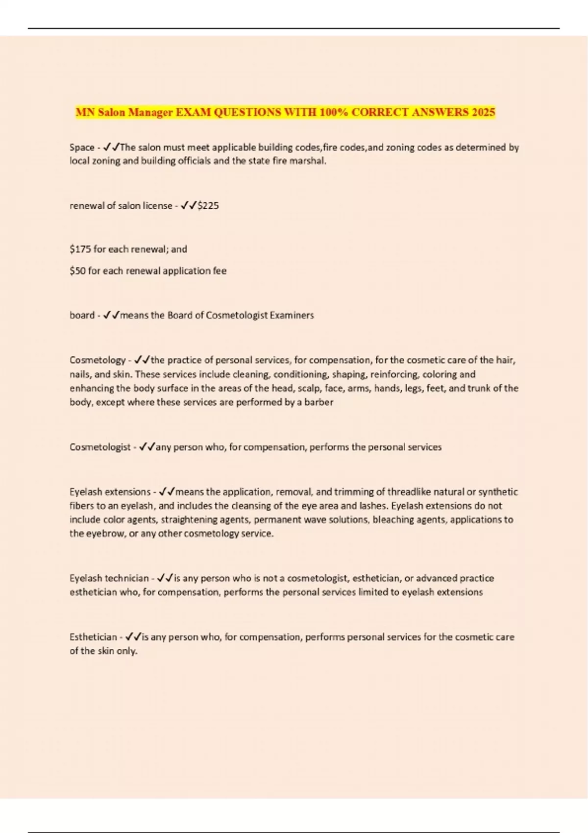 Package deal ::: MN Salon Manager EXAMS 2024-2025 with 100% Correct Answers