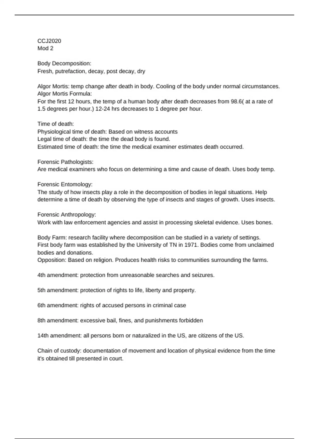 Intro to Criminal Justice Module 1 & 2 Extensive Lecture & Notes