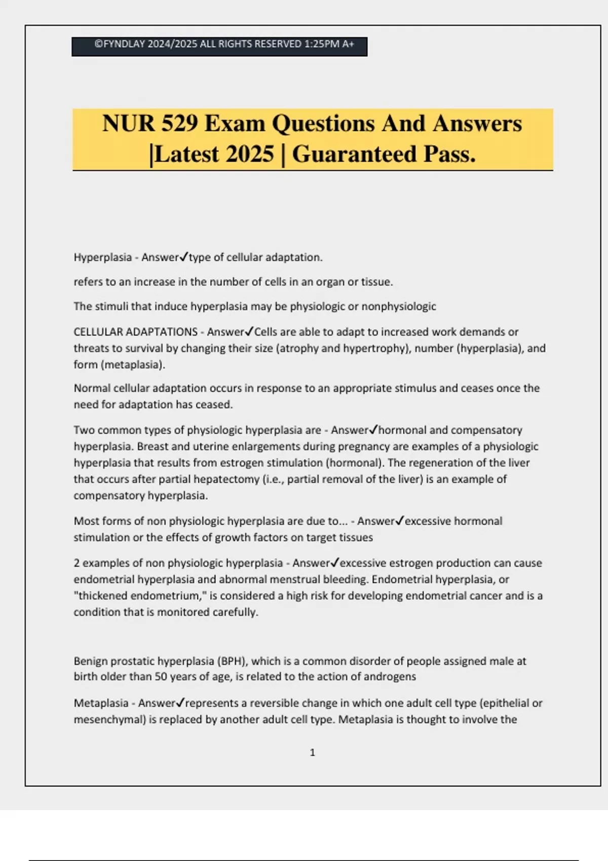 What is displasia? - Answer✔characterized by deranged cell growth of a specific tissue that