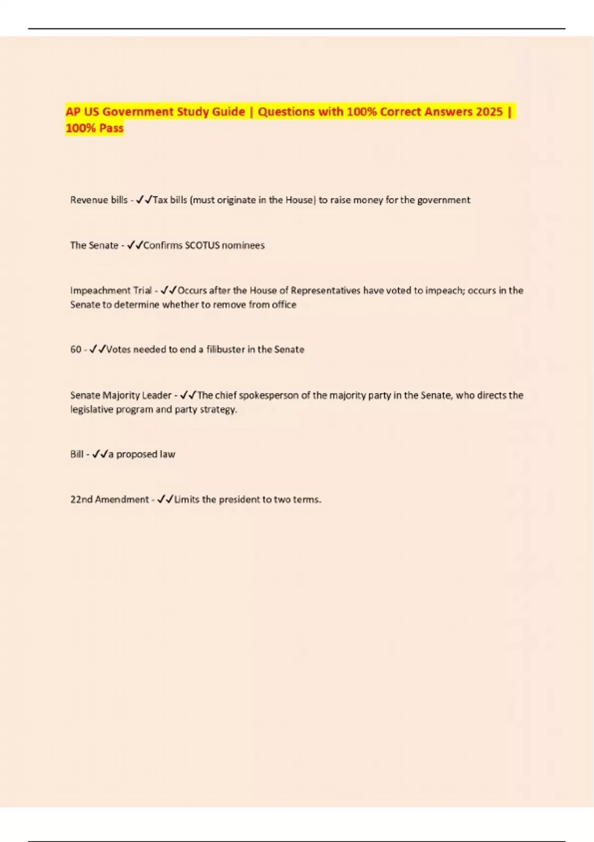 AP US Government Exam | Questions with 100% Correct Answers 2025 | 100% Pass