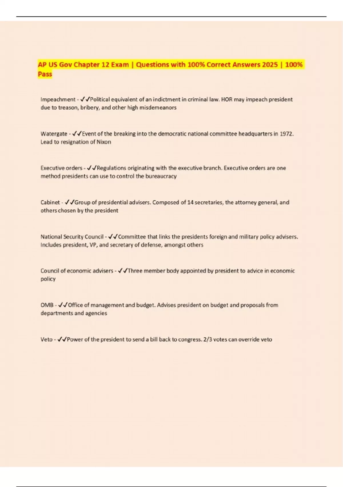 Package deal ::::AP US Government EXAMS 2024-2025 with 100% Correct Answers