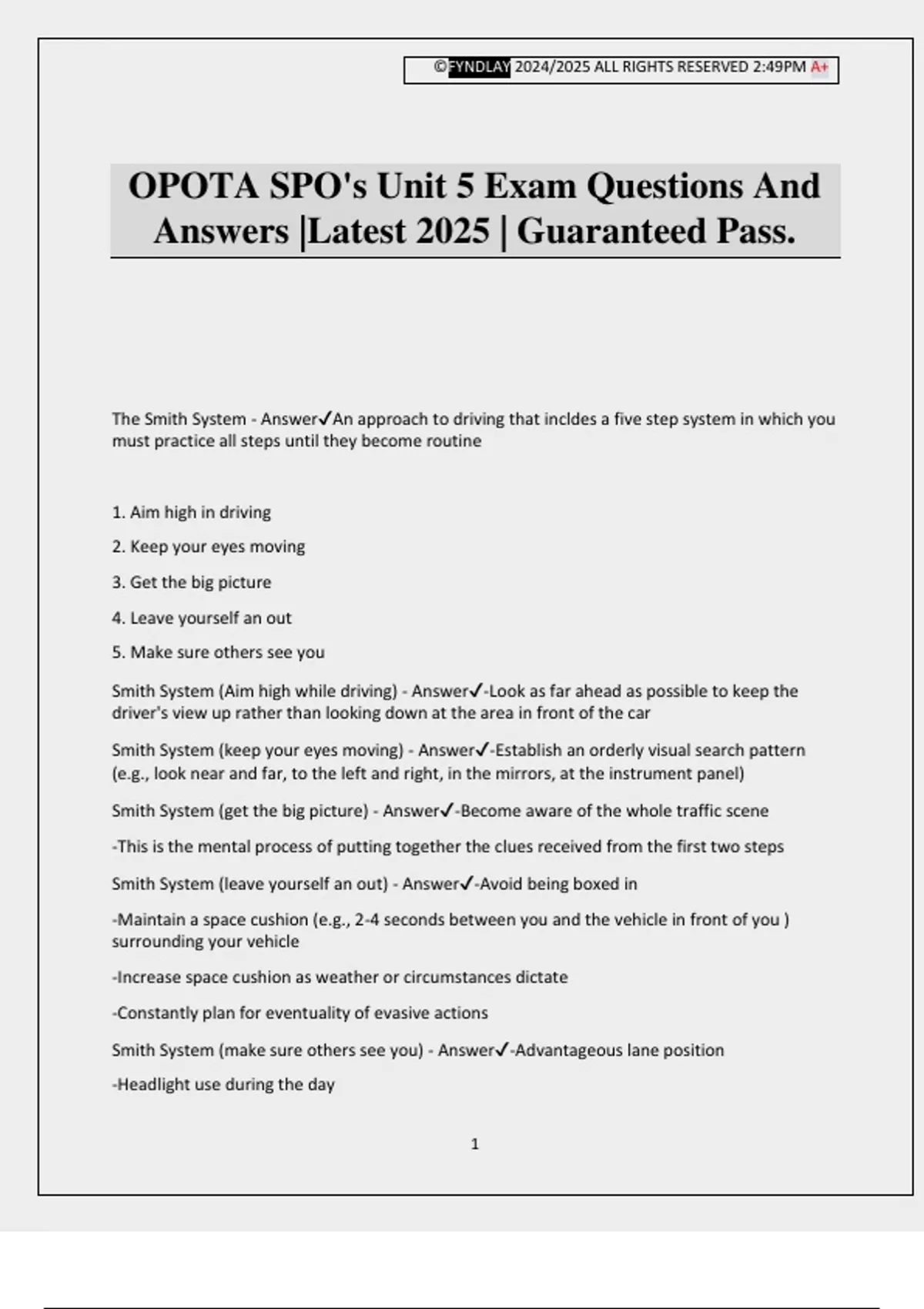 Smith System (Aim high while driving) - Answer✔-Look as far ahead as possible to keep the
