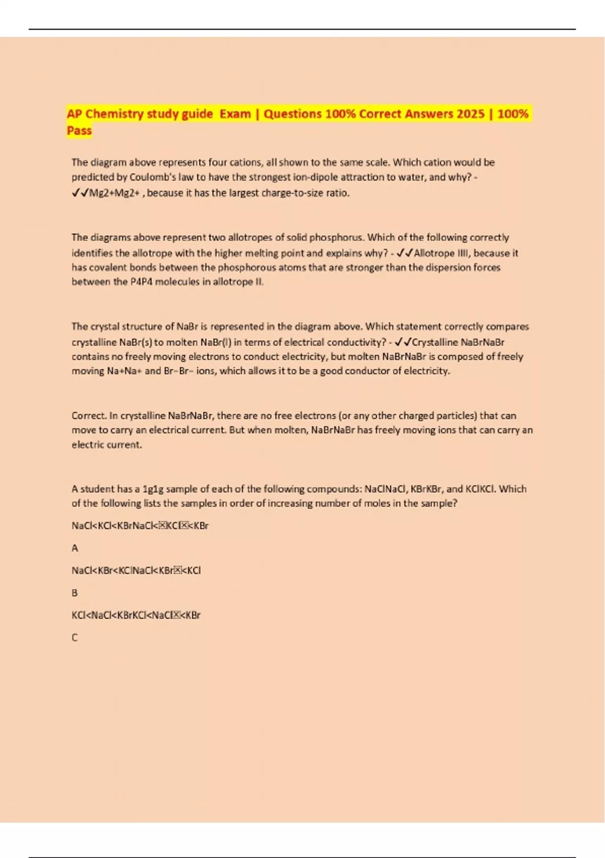Package deal ::::AP Chemistry EXAMS 2025 with 100% Correct Answers
