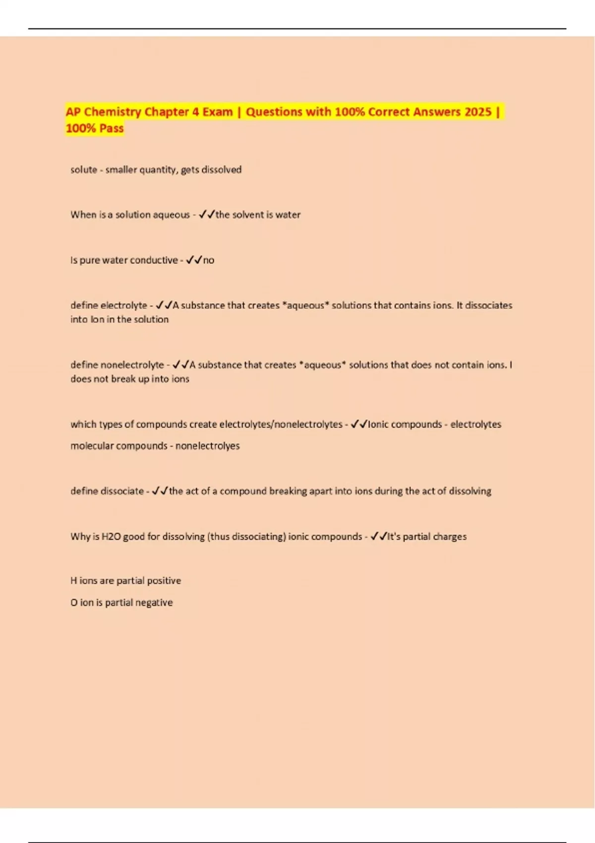 Package deal ::::AP Chemistry EXAMS 2025 with 100% Correct Answers
