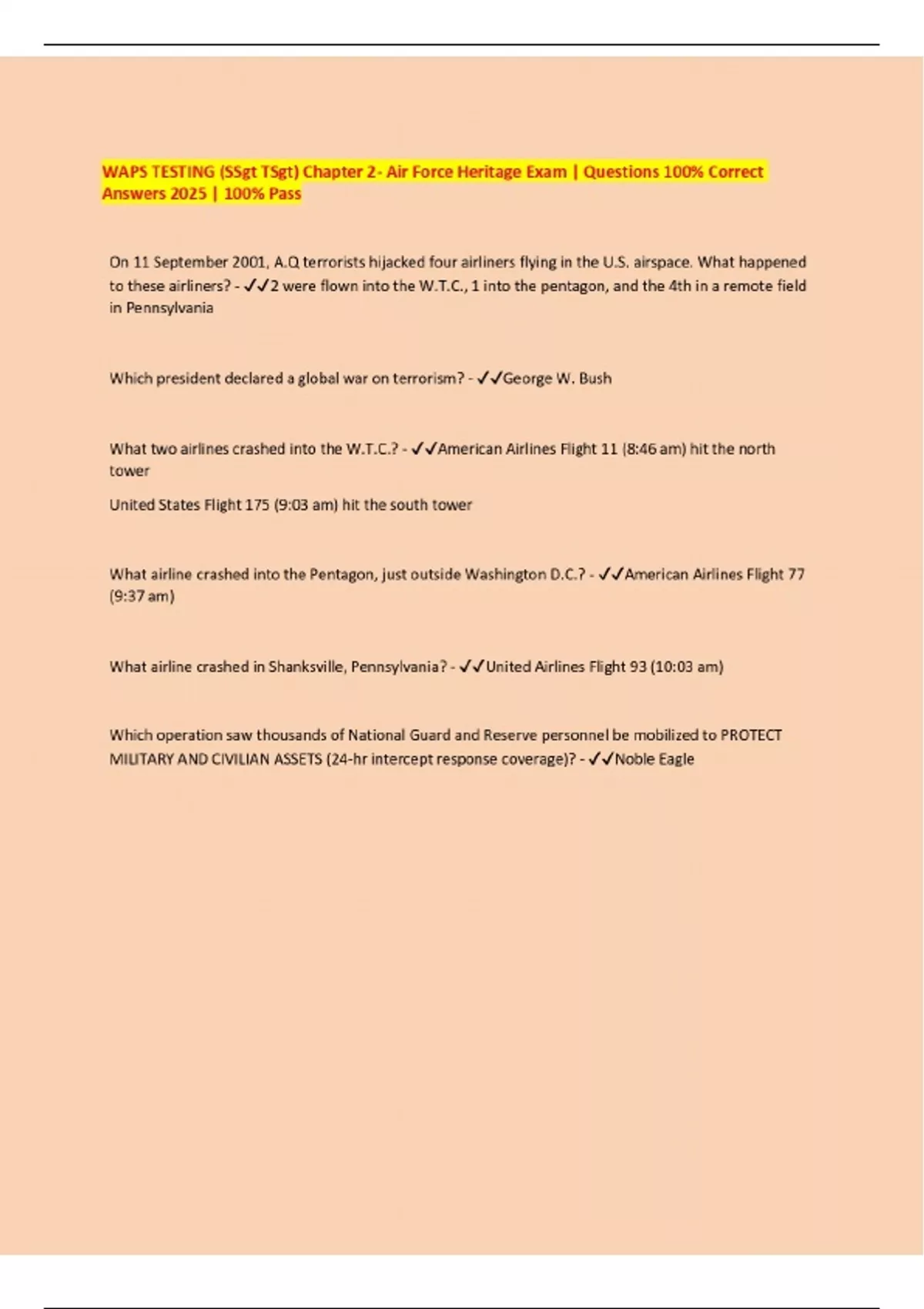 Ssgt WAPS exam Study Guide | Questions 100% Correct Answers 2025 | 100% Pass