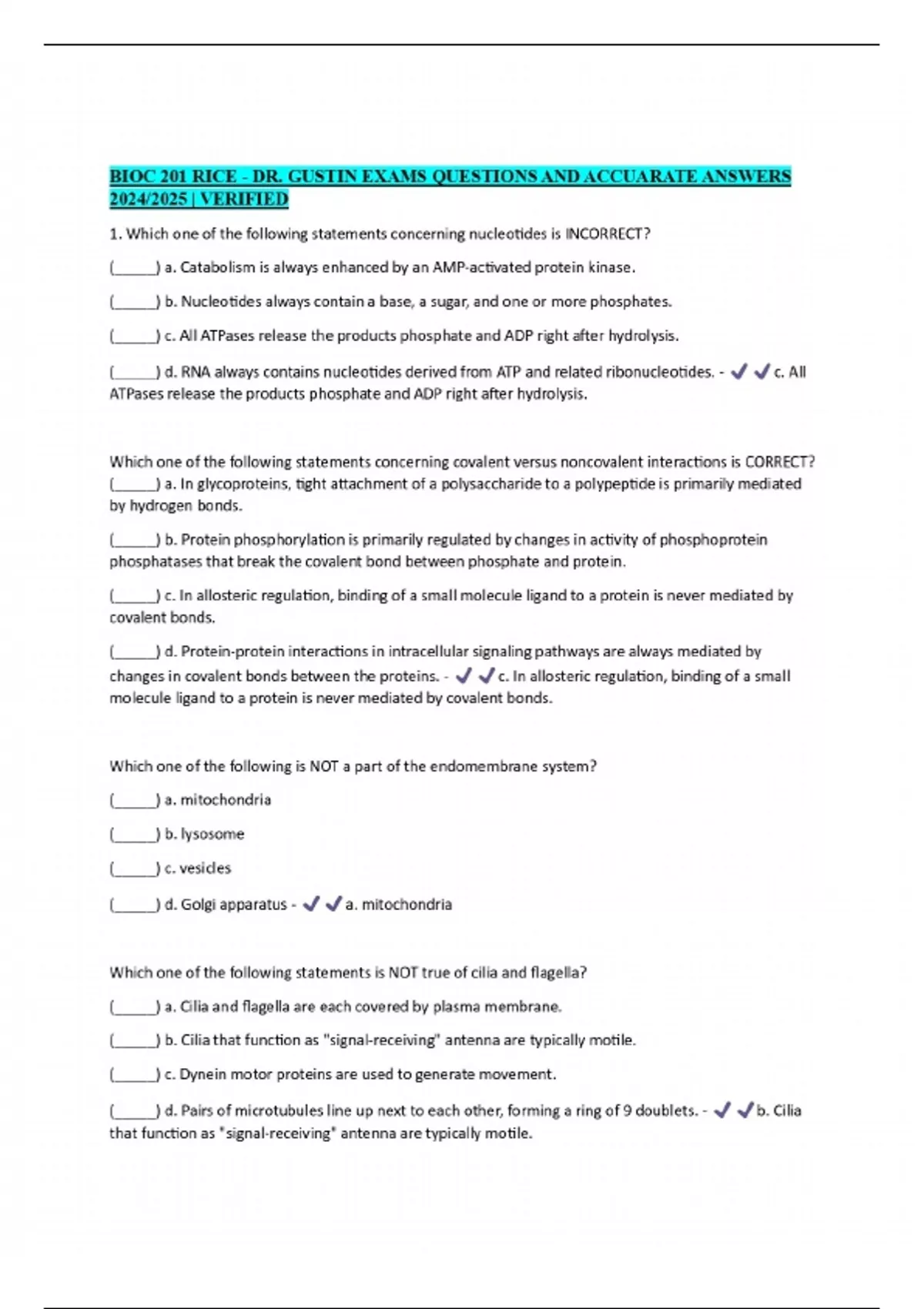 BIOC 201 Exam QUESTIONS AND 100% Correct ANSWERS