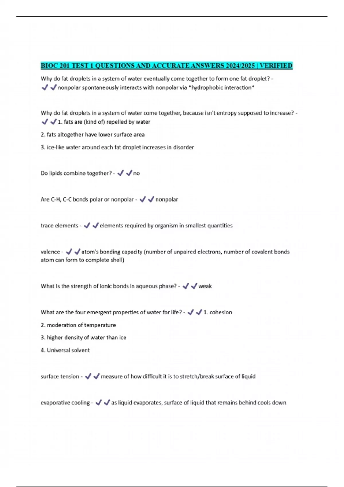 bioc 201 exam questions and 100 correct answers