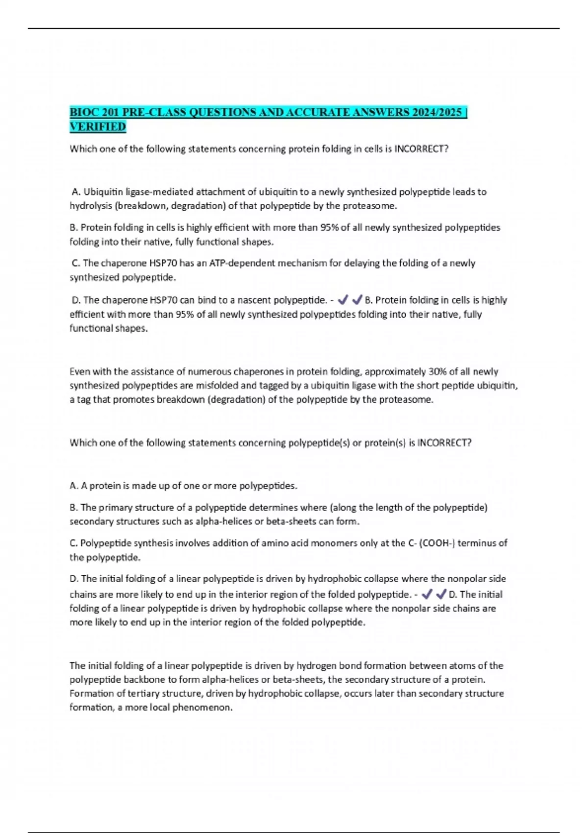 bioc 201 exam questions and 100 correct answers