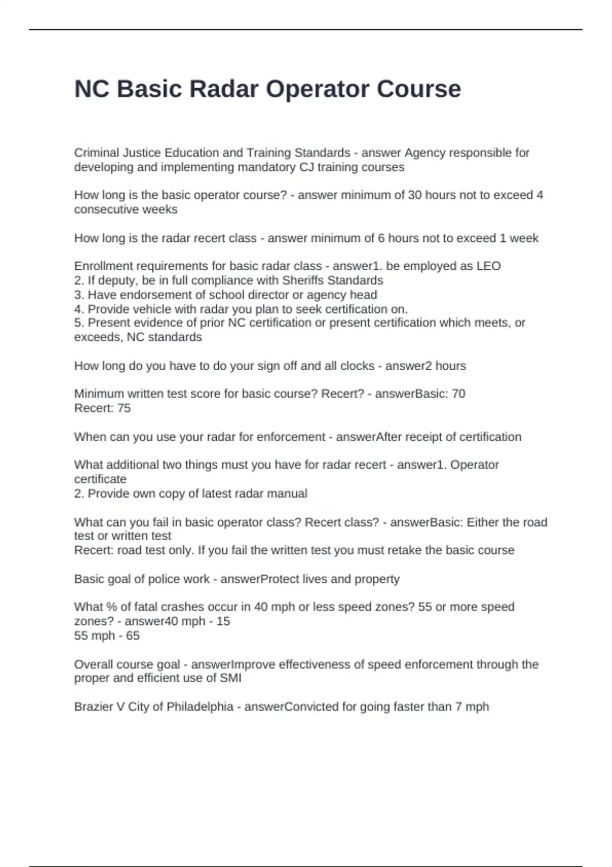 NC Basic Radar Operator Course Questions and Answers 100% Solved