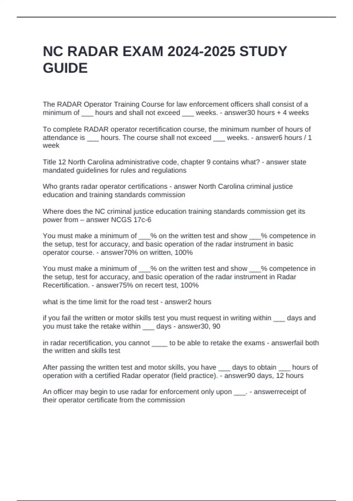 NC RADAR EXAM 2024-2025 STUDY