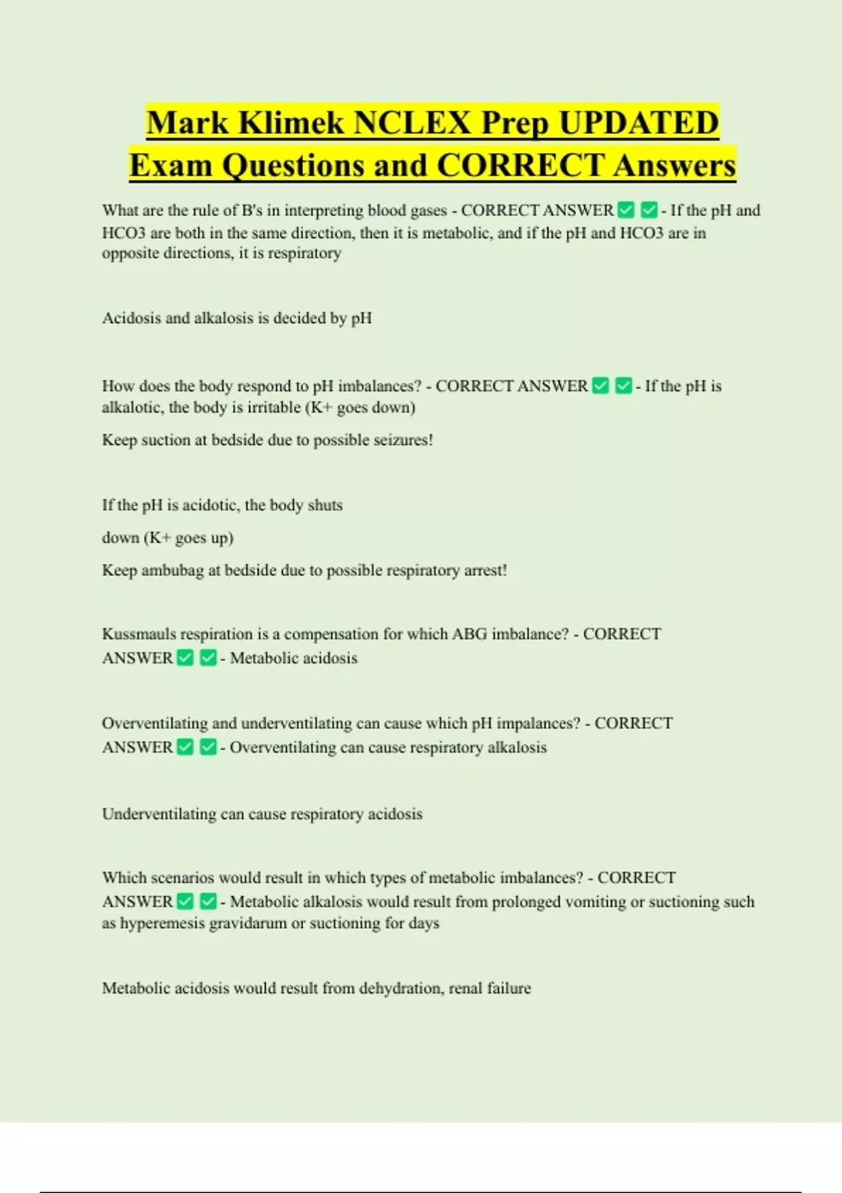 Kussmauls respiration is a compensation for which ABG imbalance? - CORRECT