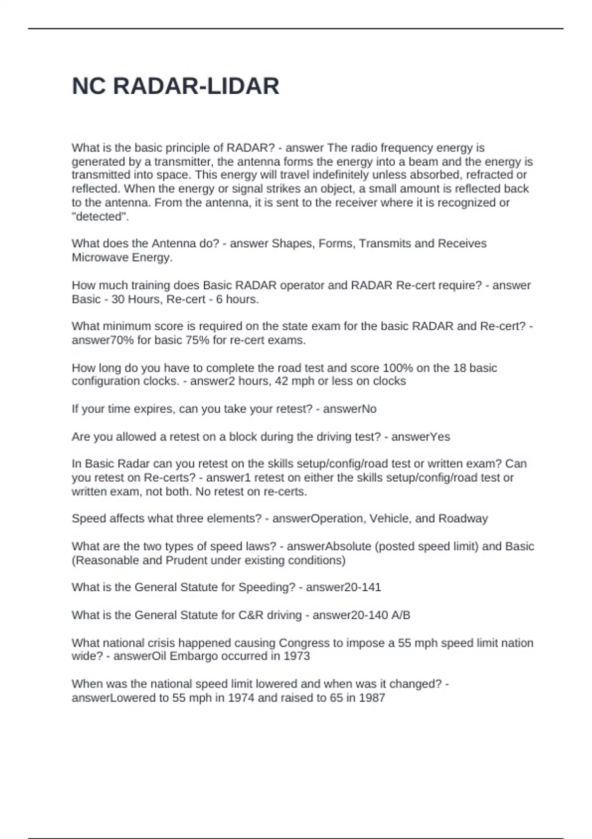 NC RADAR-LIDAR QUESTIONS AND ANSWERS 100% SOLVED