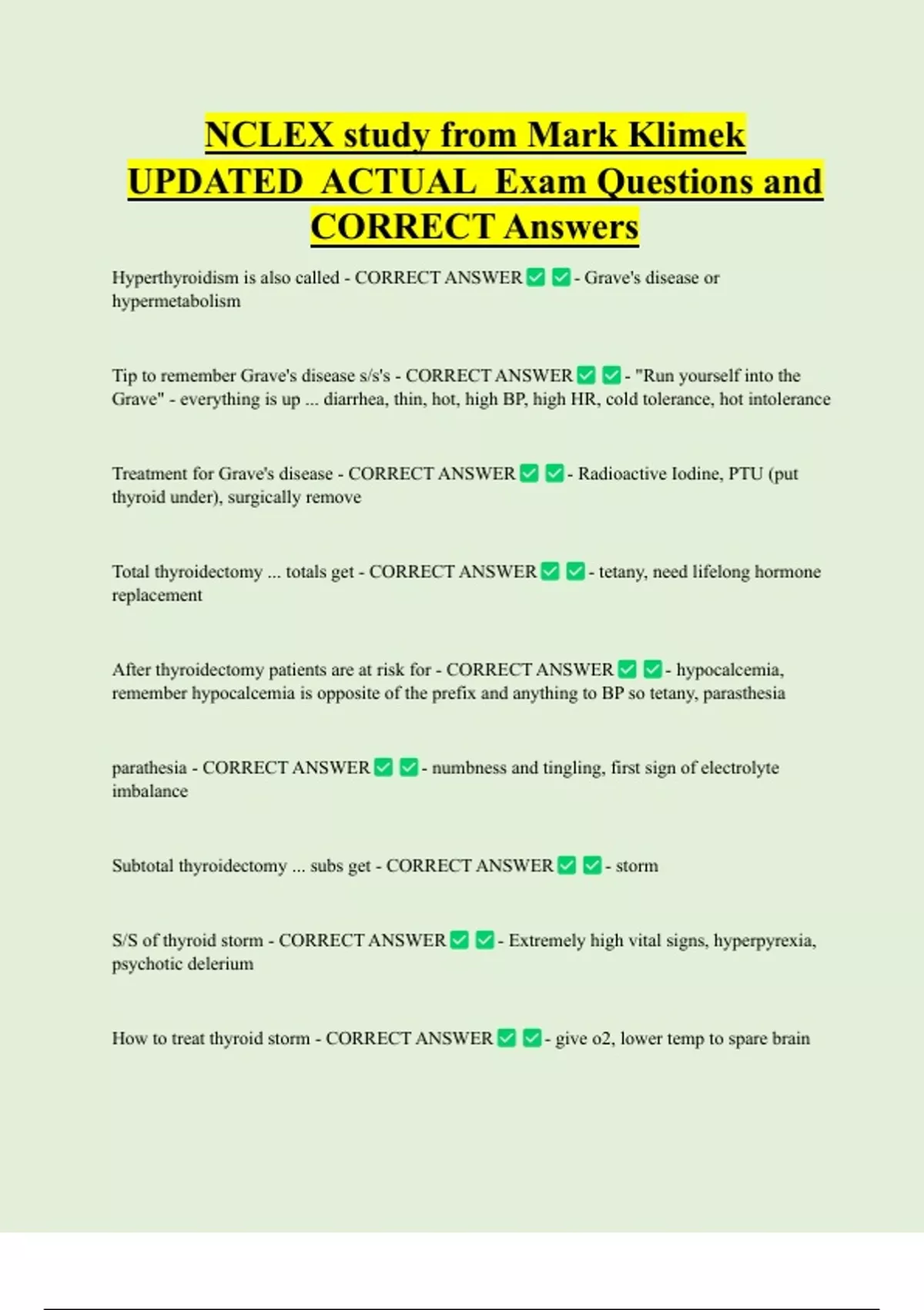 Subtotal thyroidectomy ... subs get - CORRECT ANSWER - storm
