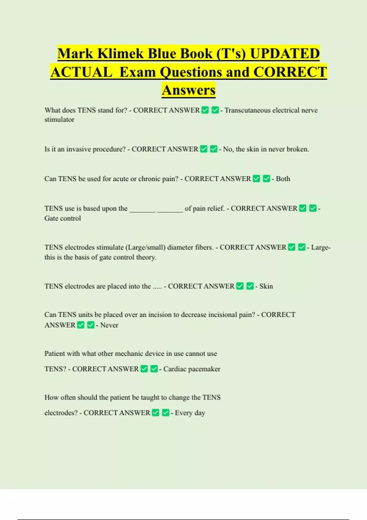 What does TENS stand for? - CORRECT ANSWER - Transcutaneous electrical nerve