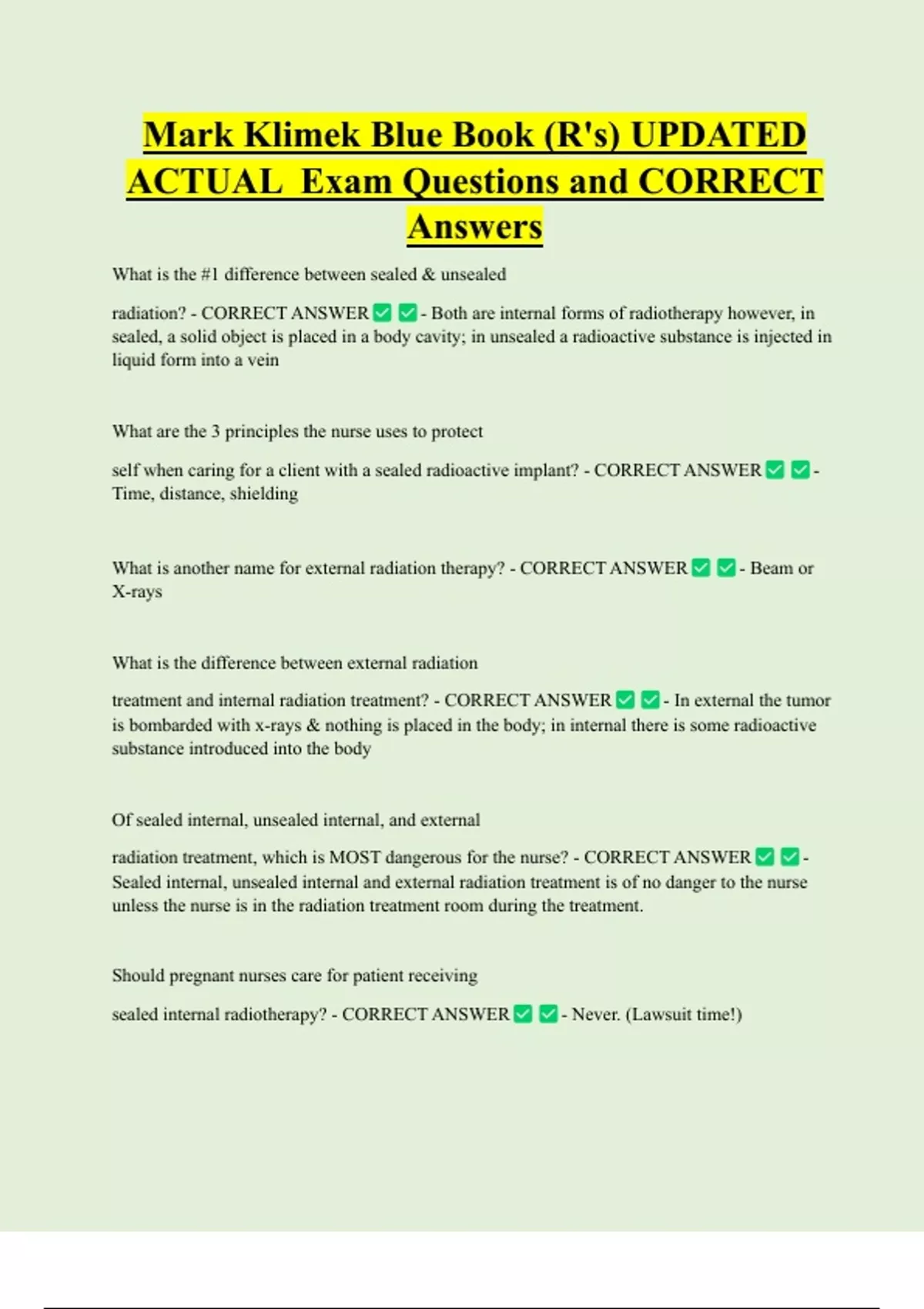sealed internal radiotherapy? - CORRECT ANSWER - Never. (Lawsuit time!)