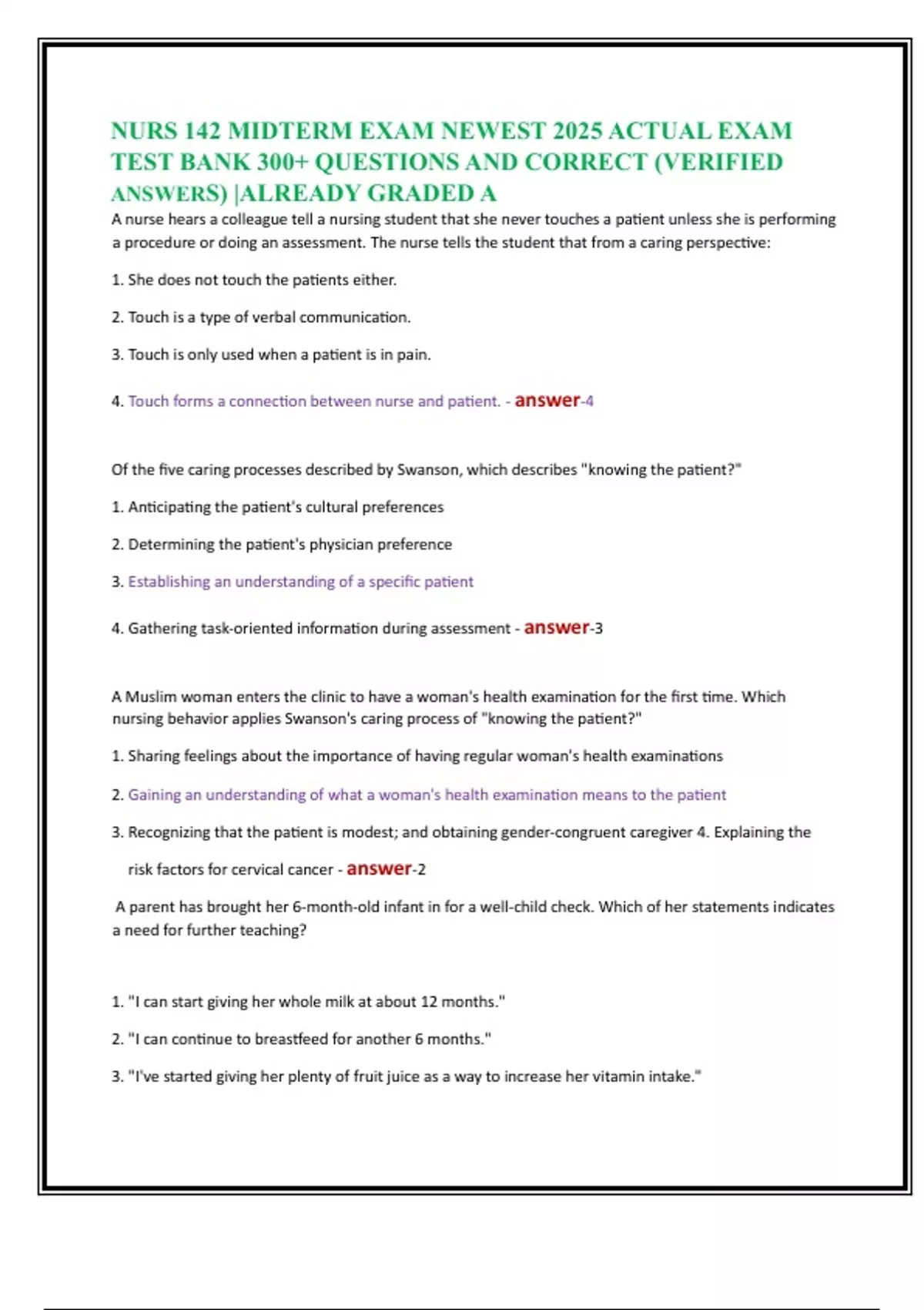 TEST BANK 300+ QUESTIONS AND CORRECT (VERIFIED