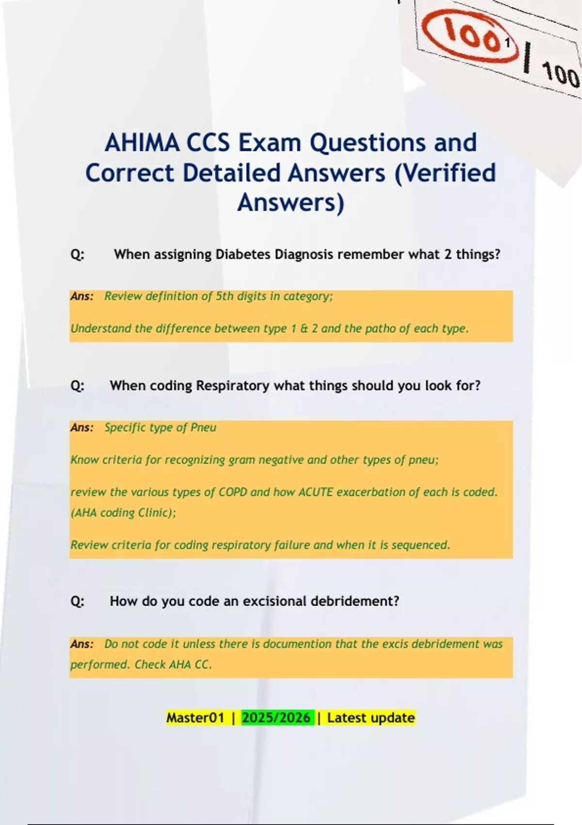 AHIMA CCS Exam Questions and