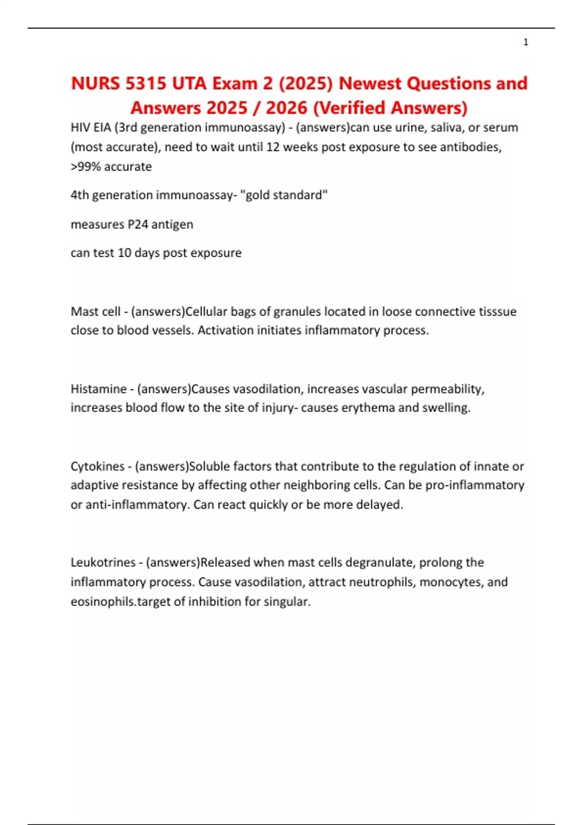 NURS 5315 UTA Exam 2 (2025) Newest Questions and