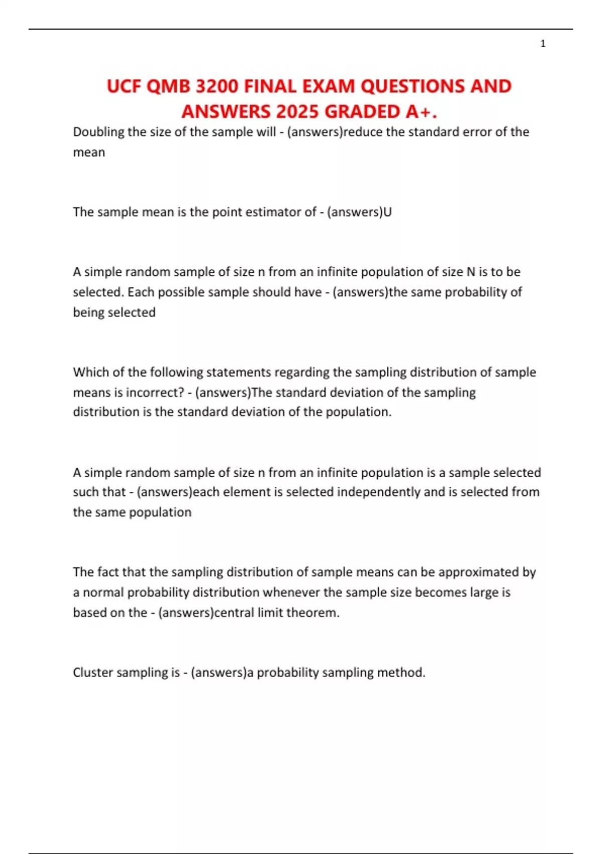 UCF QMB 3200 FINAL EXAM QUESTIONS AND