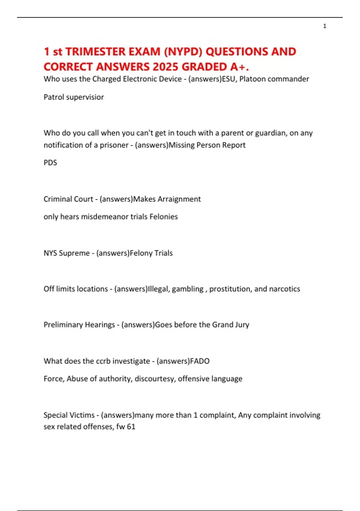 1 st TRIMESTER EXAM (NYPD) QUESTIONS AND CORRECT ANSWERS 2025 GRADED A+.