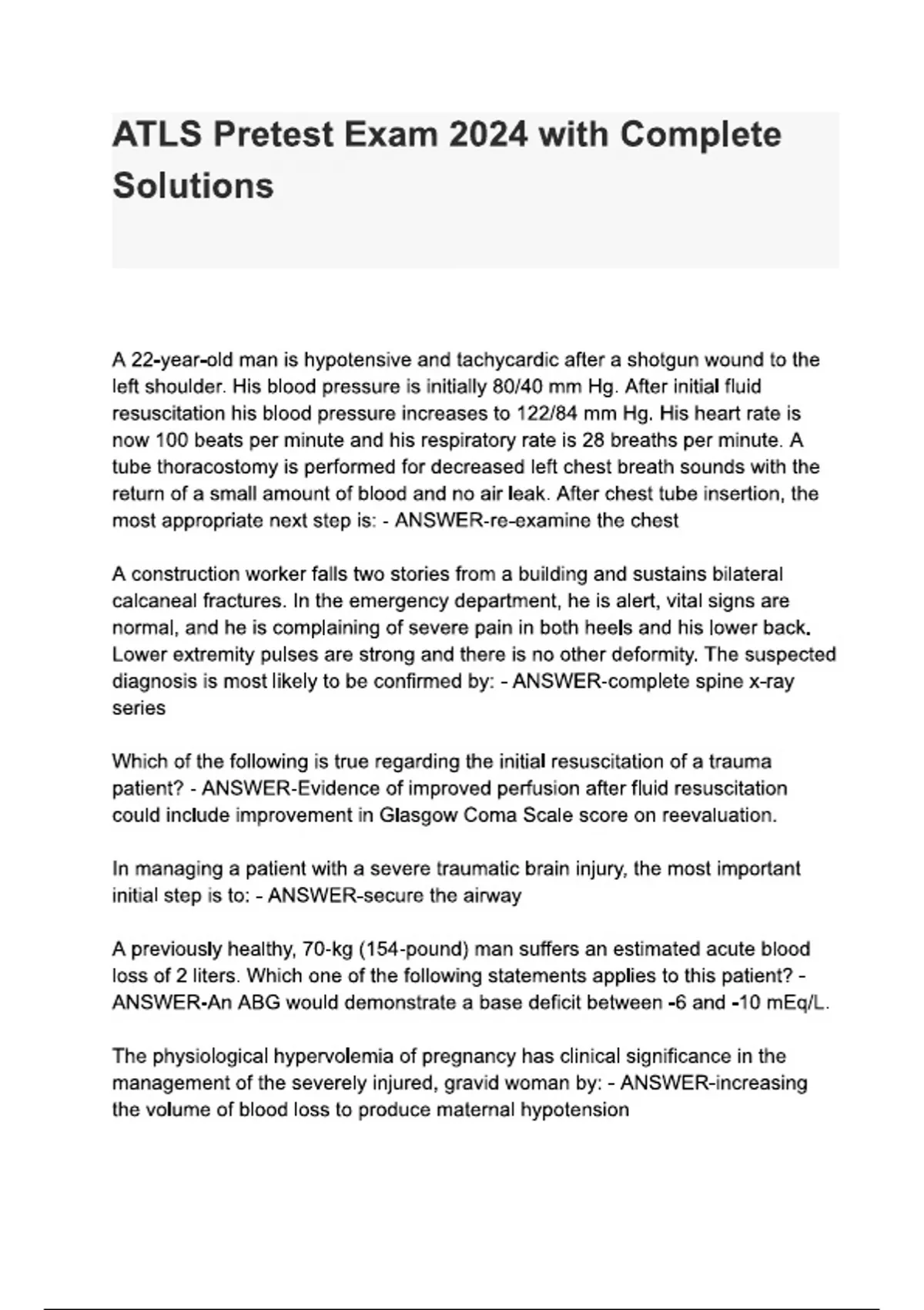 ATLS Pretest Exam 2024 with Complete Solutions