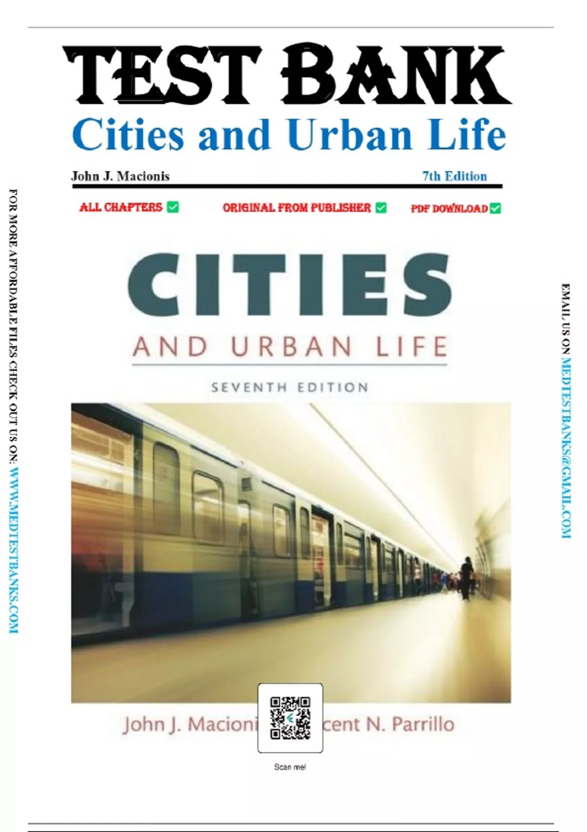 Test Bank For Cities and Urban Life 7th Edition By John J. Macionis (All Chapters 1-14). PART I — UNDERSTANDING THE CITY: ITS EVOLUTION Exploring the City Evolution of the World’s Cities Development of North American Cities Today’s Cities and Suburbs PART II — DISCIPLINARY PERSPECTIVES Urban Sociology: Classic and Modern Statements Spatial Perspectives: Making Sense of Space Critical Urban Sociology: The City and Capitalism The Context of Cities Comparative Urbanism: The City and Culture PART III — THE STRUCTURE OF THE CITY Stratification and Social Class: Urban and Suburban Lifestyles Race, Ethnicity, and Gender: Urban Diversity Housing, Education, Crime: Confronting Urban Problems PART IV — GLOBAL URBAN DEVELOPMENTS Global Urbanization Urban Planning: Past, Present and Future