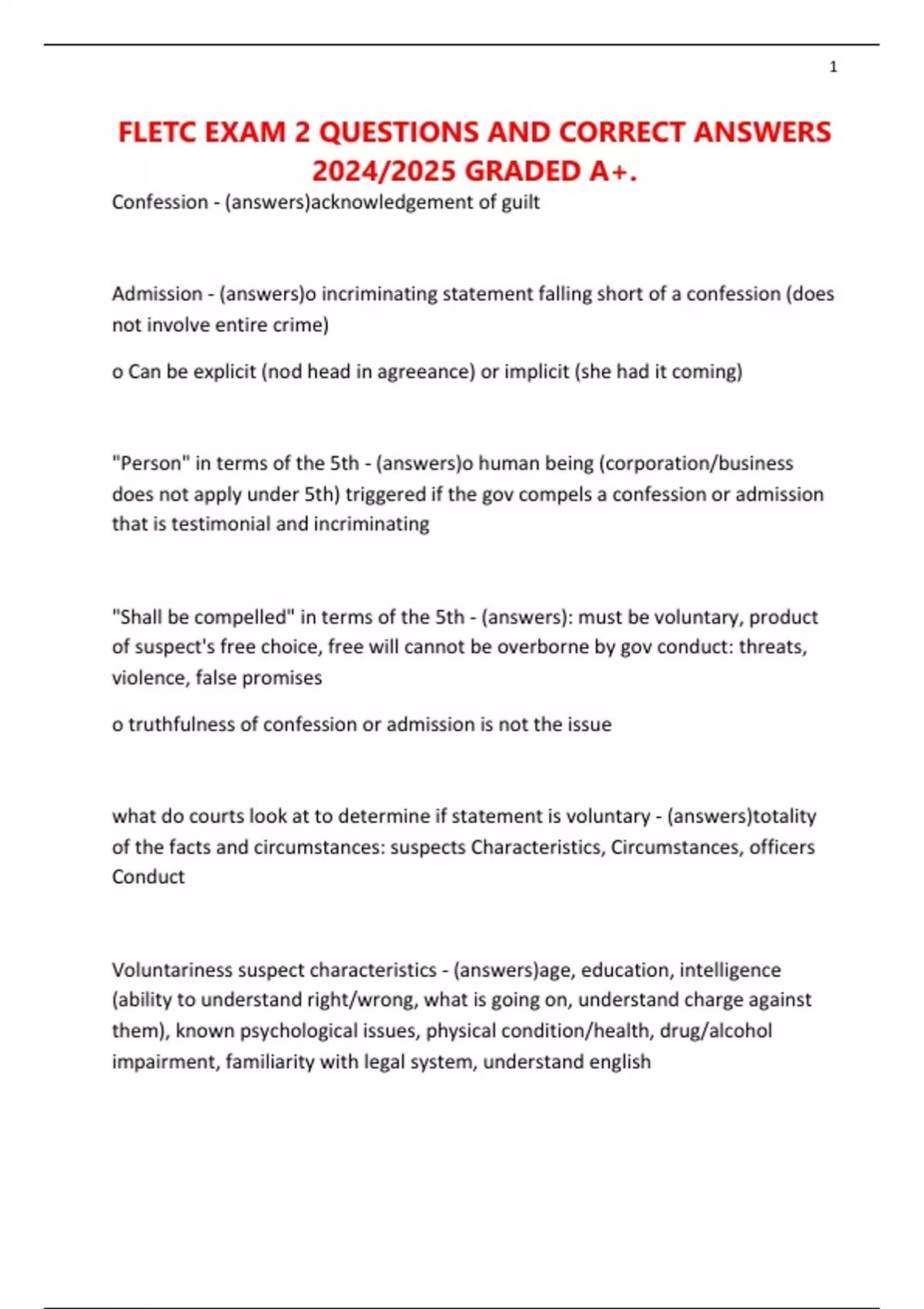 FLETC EXAM 2 QUESTIONS AND CORRECT ANSWERS 2024/2025 GRADED A+.