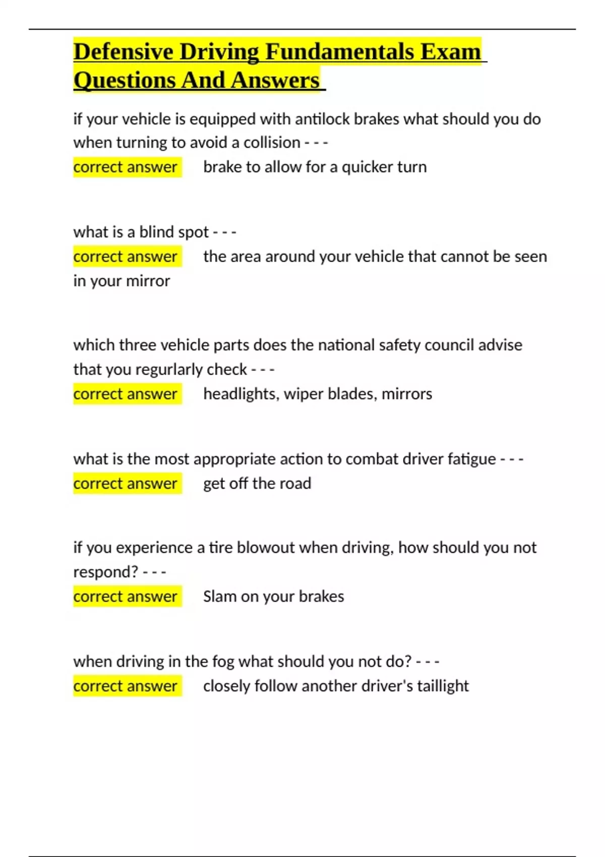 , Defensive Driving Fundamentals Exam